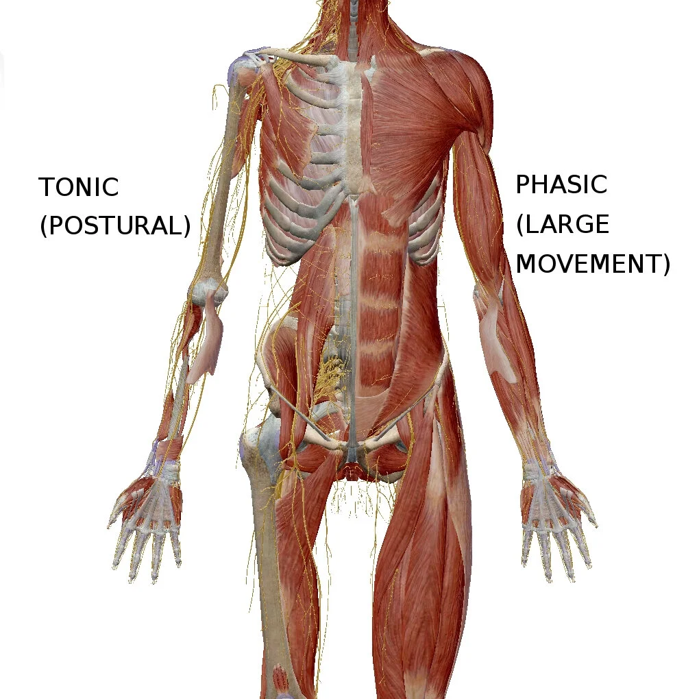 **tonic and phasic muscles are just ways of grouping muscles by function for ease of comprehension, not particularly rigid categorizations, but a useful way of viewing the body.